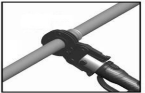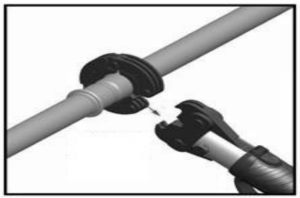 二、壓接接頭與不鏽鋼管先完成接合,然後打開環形模具包覆接頭壓接處。