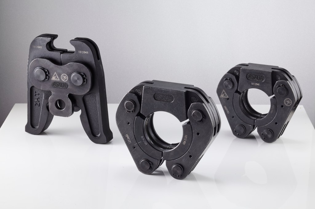 Asada環形模具的特色,在於透過環扣的方式扣住接頭,然後環扣軸的另一端進行壓接。這樣的壓接方式,會有環扣軸與環控端兩個力矩,工具機推進的時候,可以讓壓力平均分配在接頭上,降低因為力量不平均所造成的壓接凸點或者壓接不全所造成的風險。