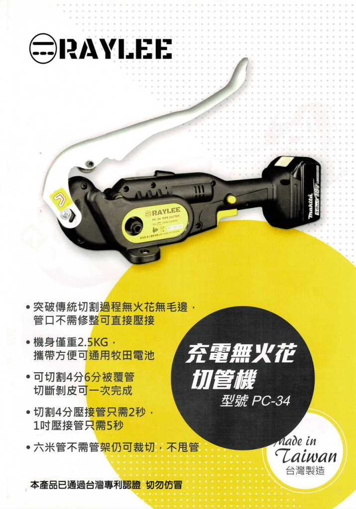 一般我們水電在做配管的,一般都是需要的一吋以下的通用尺寸。所以為了方便水電師父施作,北名實業與RAYLEE合作,提供夥伴一吋以下管徑的攜帶型切管機。該攜帶型切管機可以切割SU13(四分)、SU20(六分)、SU25(一吋)的不鏽鋼管。