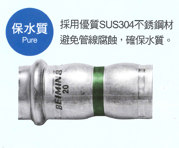 - 安全耐震:不鏽鋼雙重壓接接頭延展性高,耐震度強。