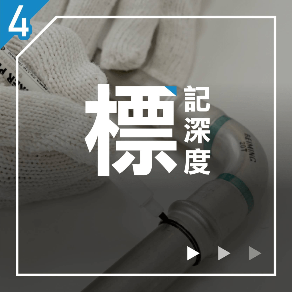 4. 標記深度:鋼管完整插入並插滿後,在鋼管與接頭交接處,標記正確的管材插入位置,避免壓接前鬆脫影響抗震強度。